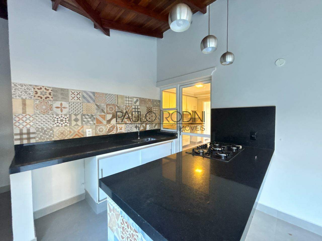 No piso inferior, dispõe de sala ampla para dois ambientes, lavabo, cozinha, área de serviço, além de área externa com espaço gourmet, um quarto e um banheiro de apoio.